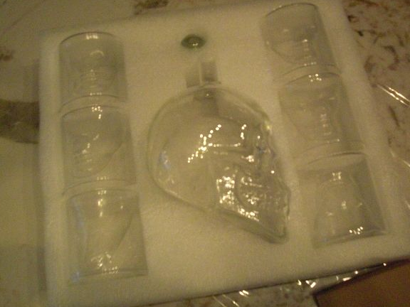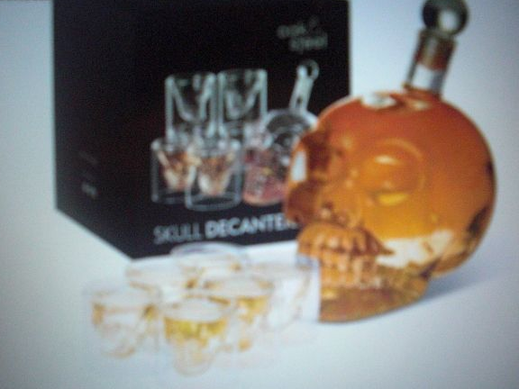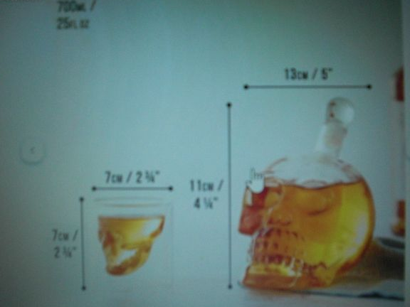 Carafe en verre "Tête de Mort "Crâne (700ml) + 6 verres à whisky Crâne (75ml) " Marque: Oak & Stell " Totalement Neufs, encore dans leurs emballages.