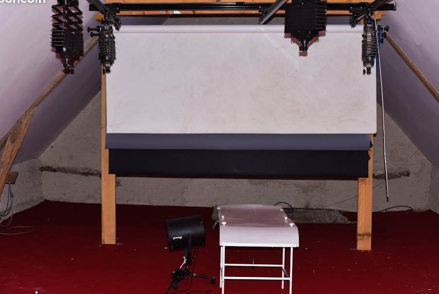 3 fonds toile vinyl de 3m sur 6m avec leurs supports dont: