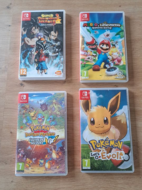 - 4 joycon ( une manette a juste le joystick abîmer mais fonctionne tres bien )