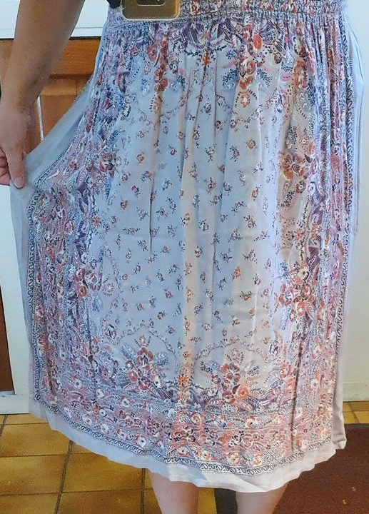Jupe légère 100% viscose, tissu très agréable pour l’été.