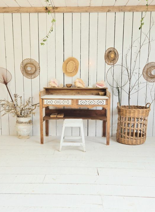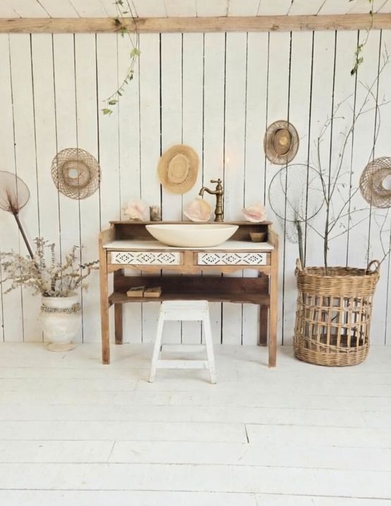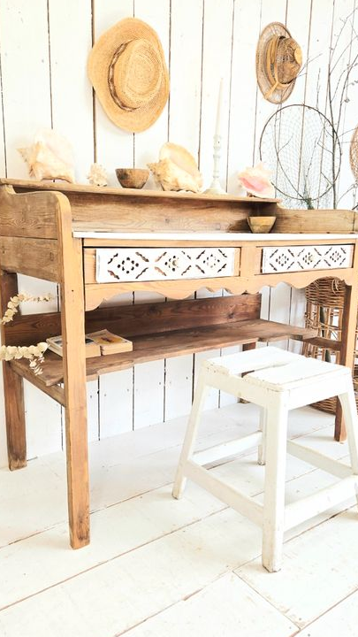 Façade de tiroirs avec un ancien paravent en bois exotique