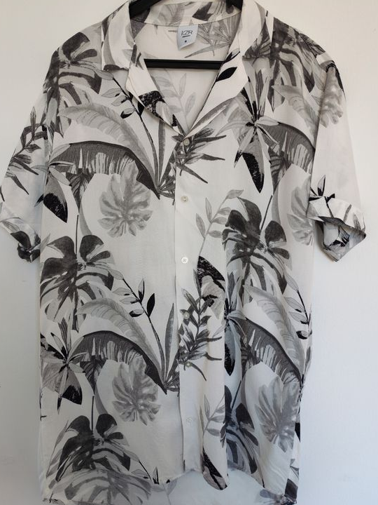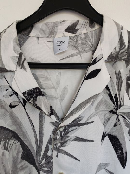 Chemise Hawaïenne KZR Onenine84 - 100% Viscose - Motif Tropical Noir/Blanc - Taille M