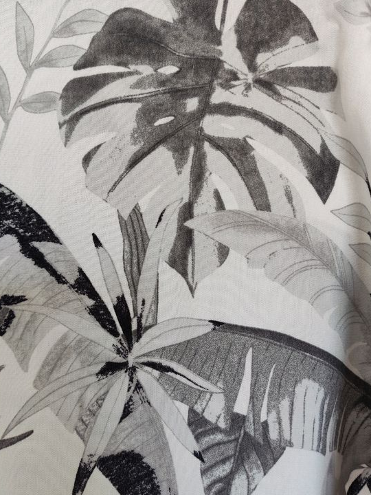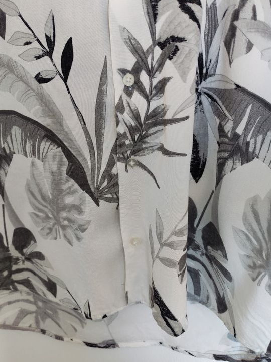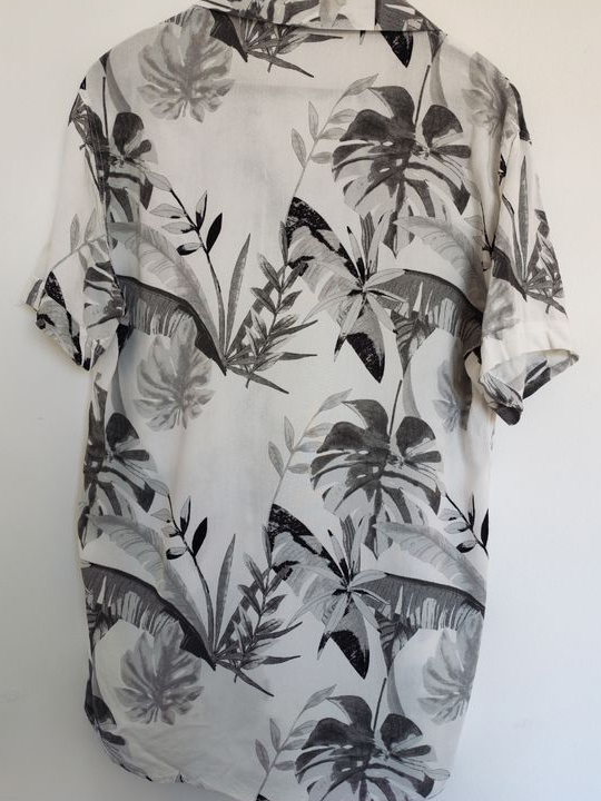 Détails : Fermeture boutonnée, manches courtes à revers, motif palmier et monstera. Fabriqué en Turquie