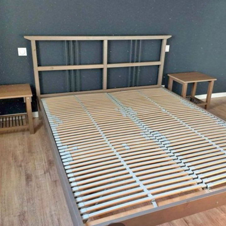 Je vends le cadre de lit, les lattes ainsi que les 2 tables de chevet.