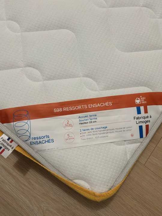 Le matelas est en très bon état, presque neuf : acheté en janvier 2023, il n’a servi que 2 mois, pour cause de déménagement.
