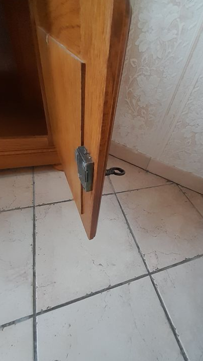 - Aménagement : , 2 portes battantes fermeture à clés et une 3ème sur la partie supérieur vitrée