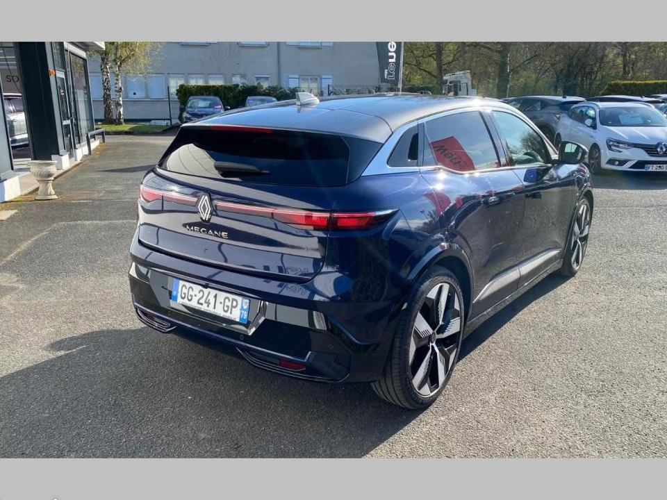 Renault Mégane E-TECH EV60 220 ch optimum charge Techno berline, bleu/gris, 4 cv, 5 portes, première mise en circulation le 11/05/2022, garantie 12 mois.