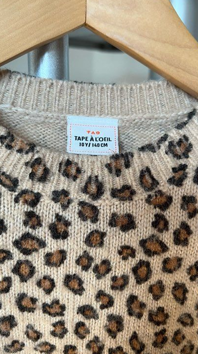 Pull beige léopard Tape à l’œil 10 ans - 6 €