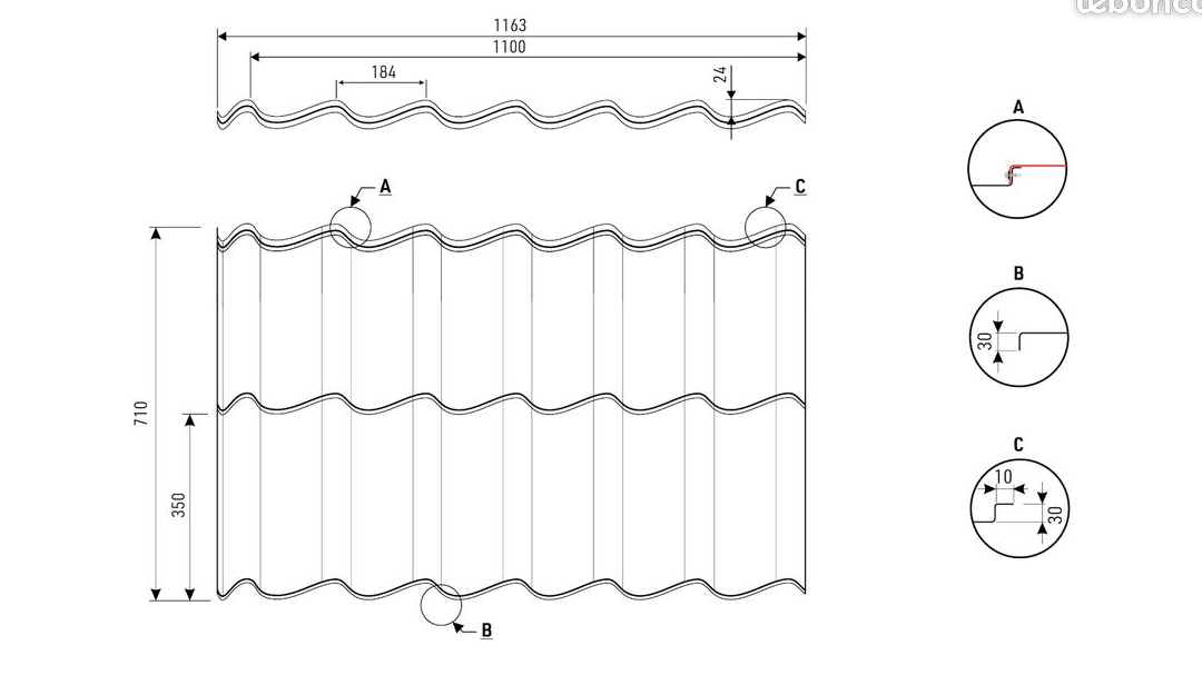 ⦁ Tôle de rive 1,05 m : 10,45 € TTC/pièce