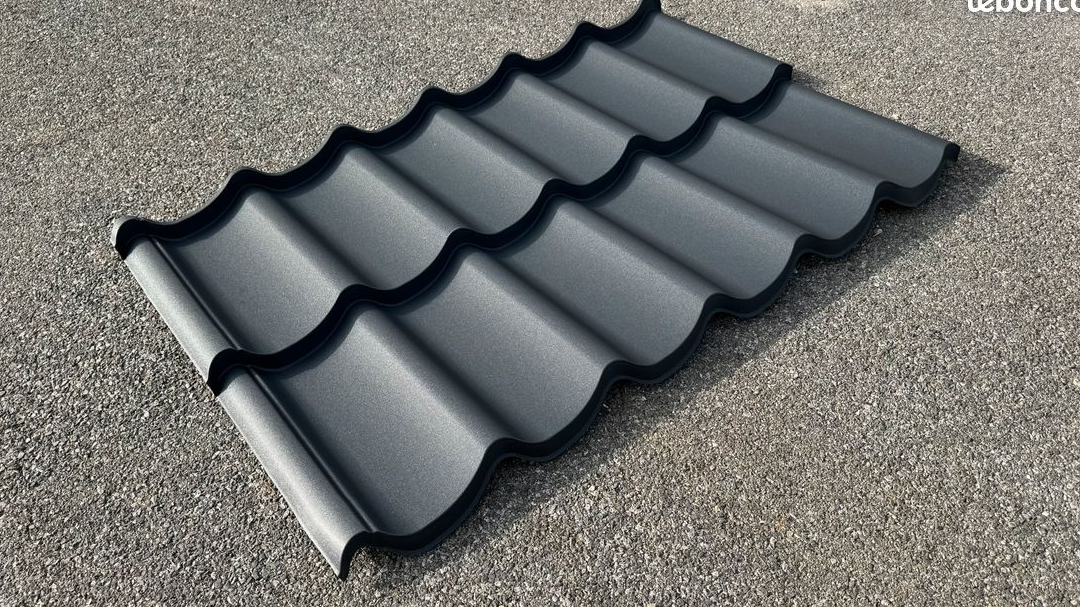🏠 Tôle Modulaire imitation tuile L – Rouge tuile, Gris ardoise, Noir, Marron, Vert à prix discount !