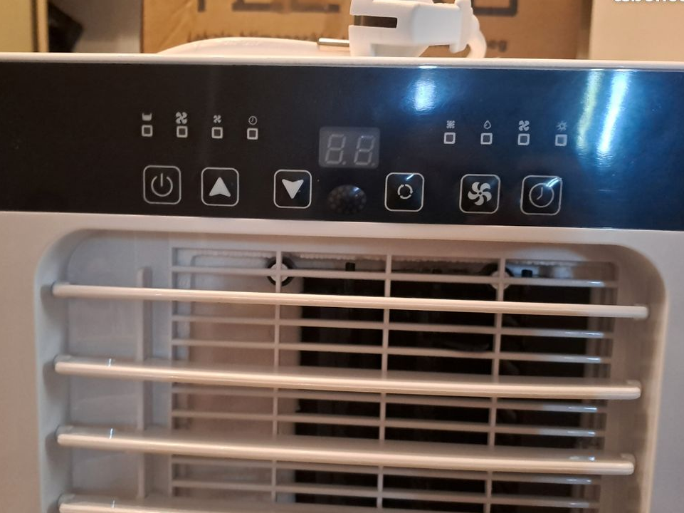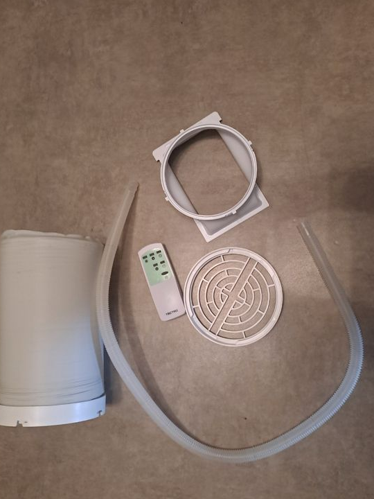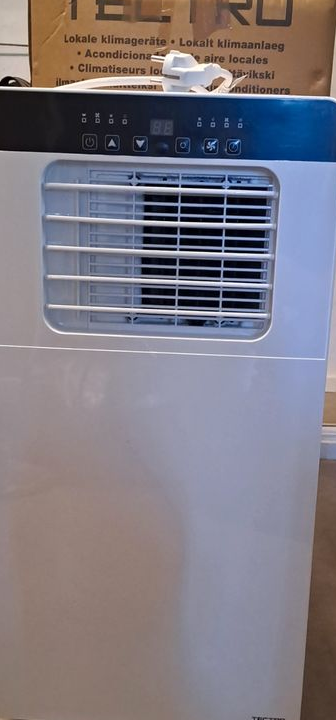 Je vends ce climatiseur mobile Tectro blanc à roulettes, parfait pour rafraîchir efficacement votre intérieur pendant les périodes chaudes.