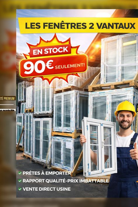 Toutes nos fenêtres 2 vantaux en stock – disponibles en stock à 90€ TTC, prêtes à être installées.