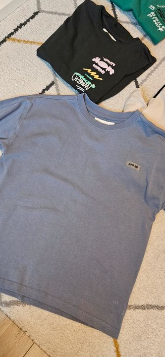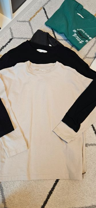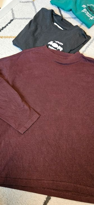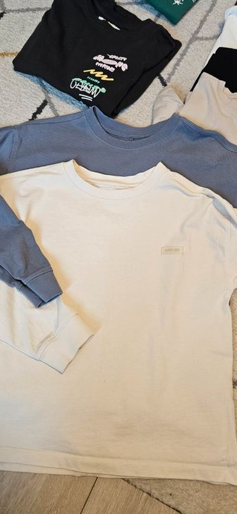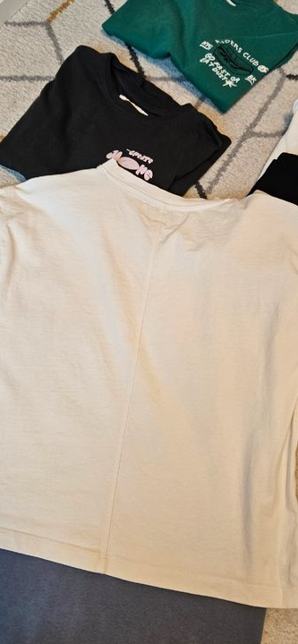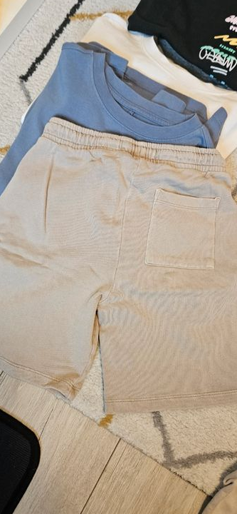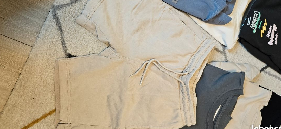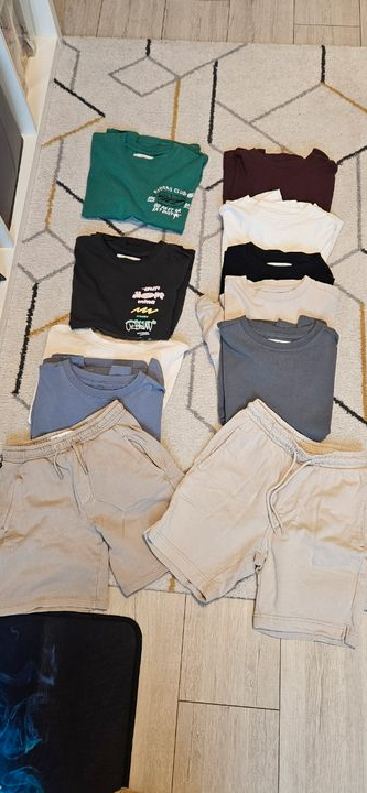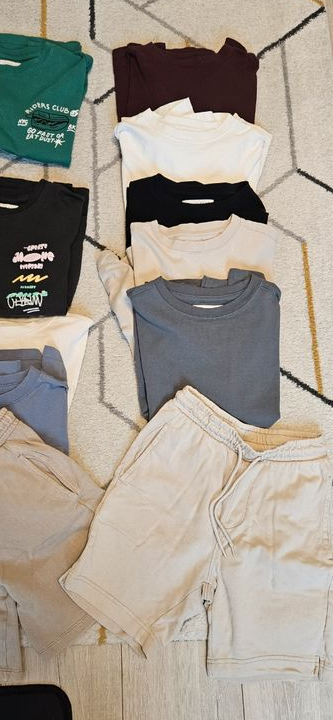 1 t-shirt vert, 2 shorts (dont 1 kiabi taille xxs), et t-shirts manches longues / sweats légers. Parfait pour le printemps. 🌈