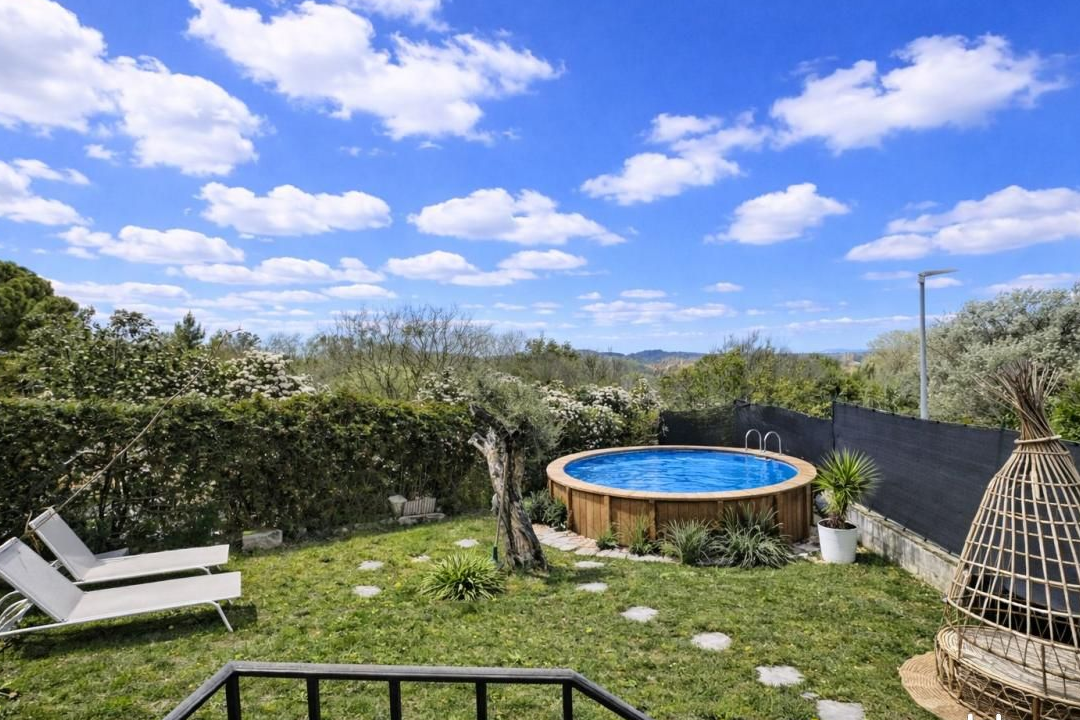Le jardin, à aménager selon vos envies, accueille déjà une piscine semi-enterrée en bois.