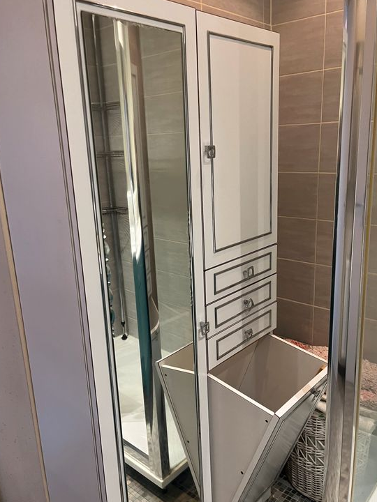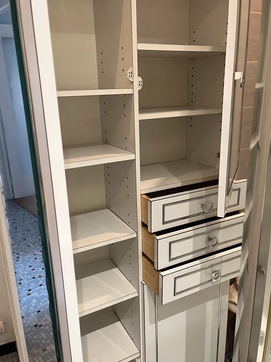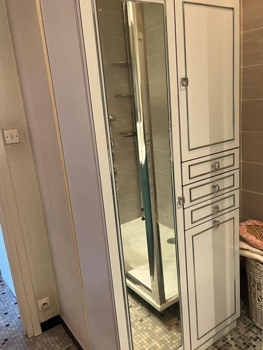 Meuble de salle de bains haut en parfait état blanc avec miroir