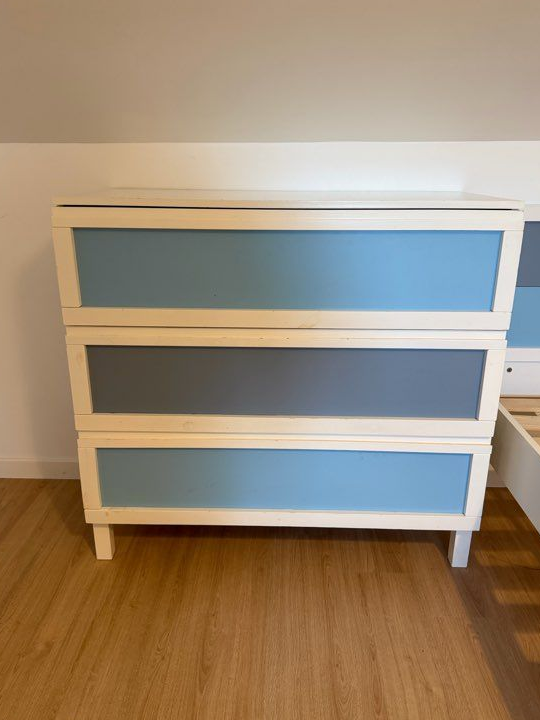 Nous vendons cette ensemble lit + commode et table de nuit, suite à notre déménagement.