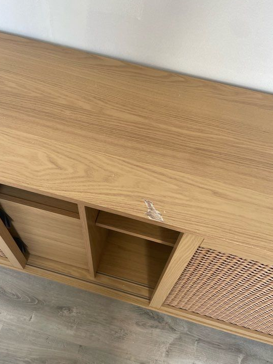 Le meuble est un peu abîmé sur le revêtement (voir photo).