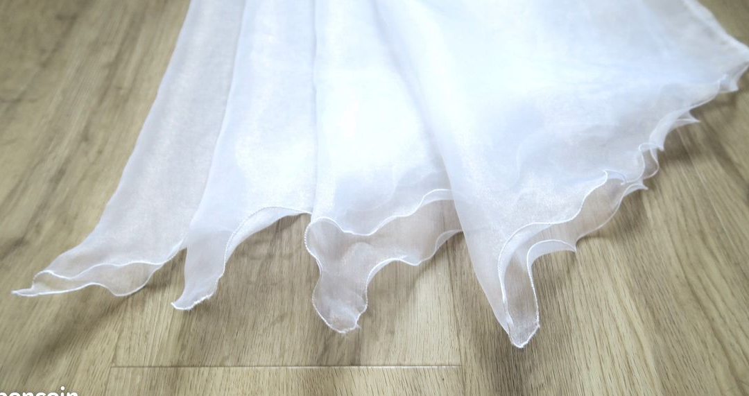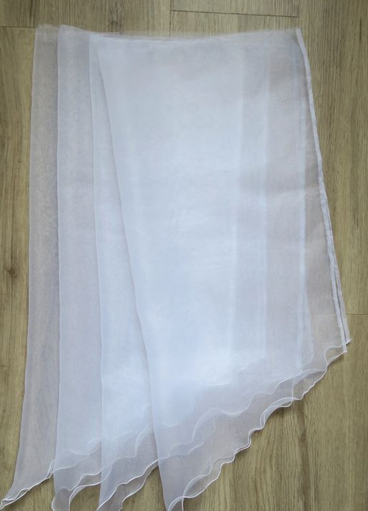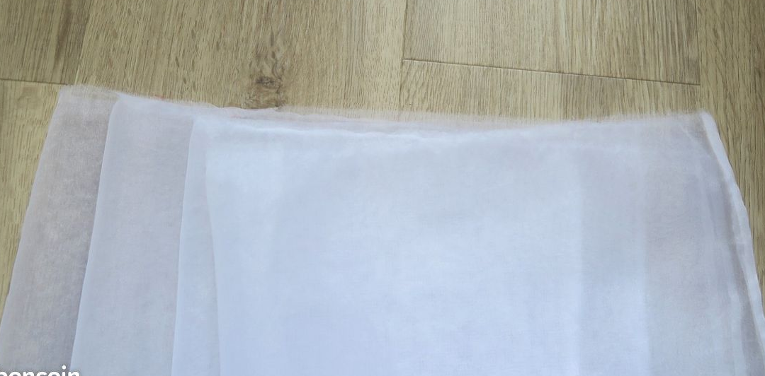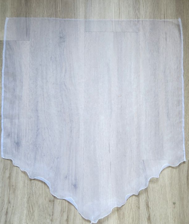Quatre petits rideaux brise bise uni blanc, 100 % polyester, base en pointe festonnée. Voilage transparent qui laisse passer un maximum de lumière. Ourlets côtés roulottés main. Reste à ourler le haut du panneau pour suspendre le voilage.
