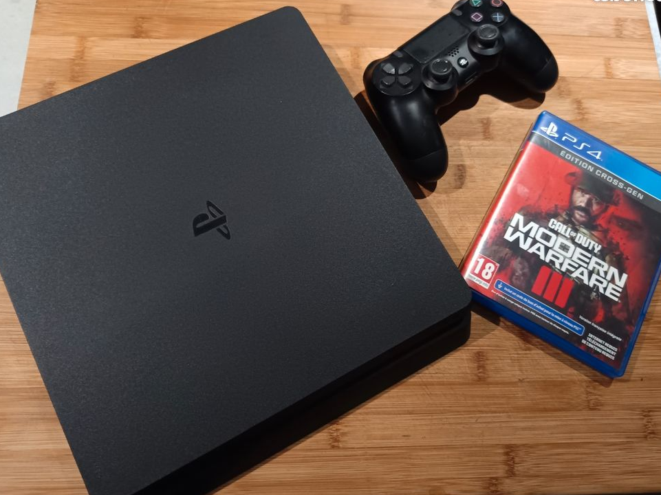 Console PS4 en bon état avec une manette agrémentée de Call of Duty Modern Warfare