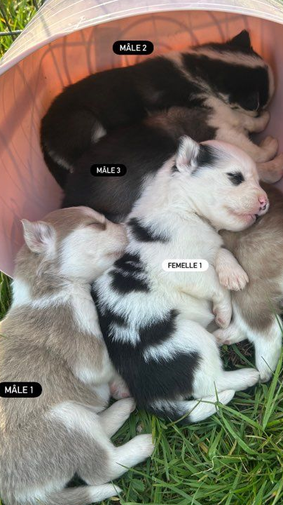 Nous avons le plaisir de vous présenter nos 5 magnifiques chiots Pomsky F4, tous disponibles à la réservation dès maintenant… ! 🐾