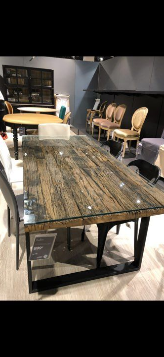 Table a manger Maison du Monde en chêne et verre trempé 6/8 personnes
