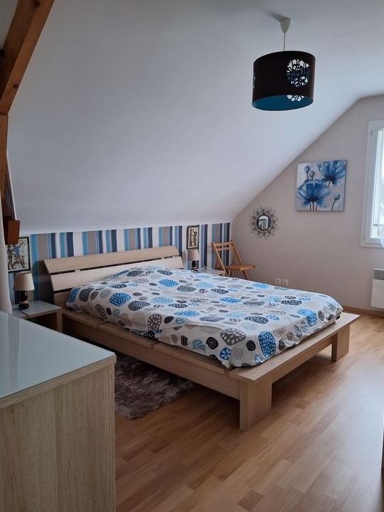 La maison dispose également d'un grand préau (construit en 2017) avec toiture en ardoises naturelles (stationnement d'un van Renault Trafic) ainsi qu'un grenier plancher de 24 m2, offrant de nombreuses possibilités d’aménagement.