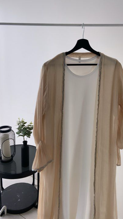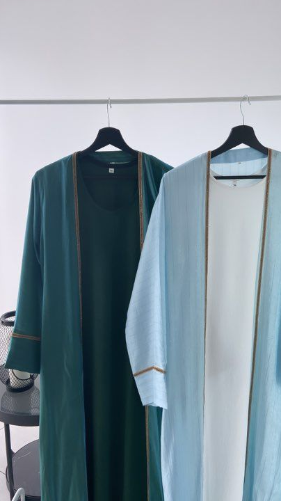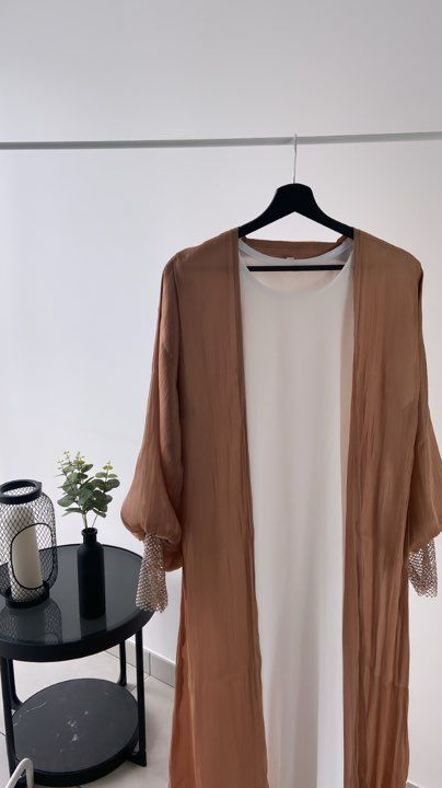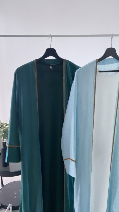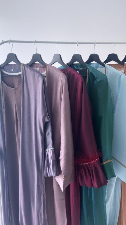 Lot d’une trentaines d’ensembles abayas avec kimono et voile.