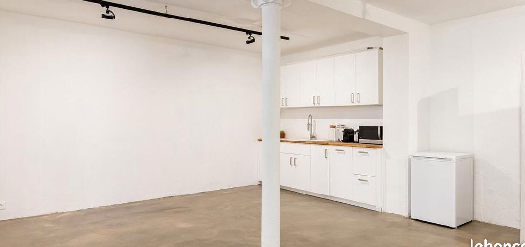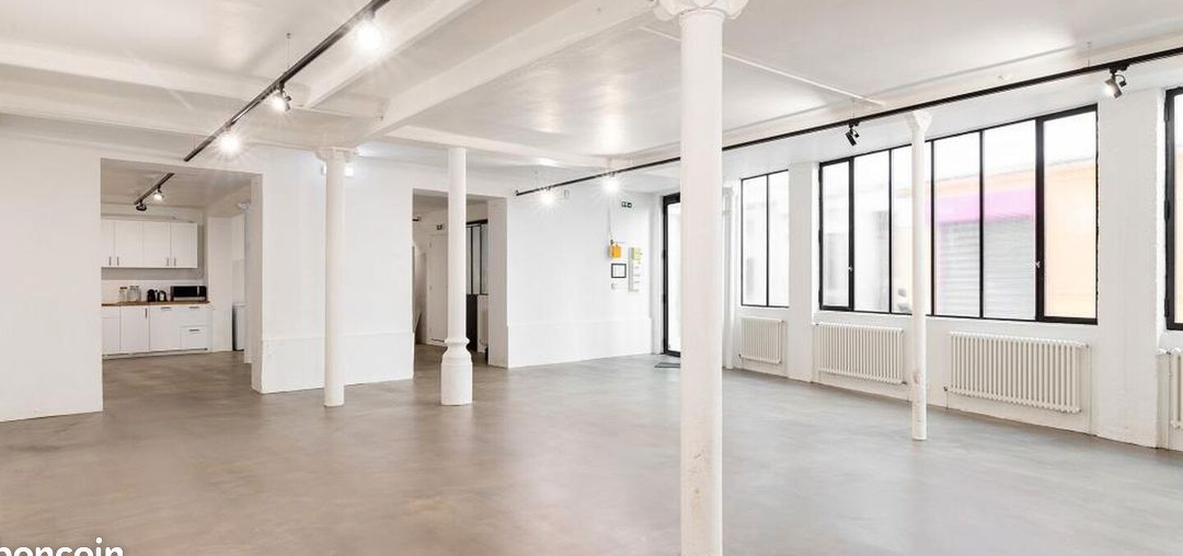Surface organisée en espaces ouverts/bureaux cloisonnés, 1 cuisine et 1 sanitaire