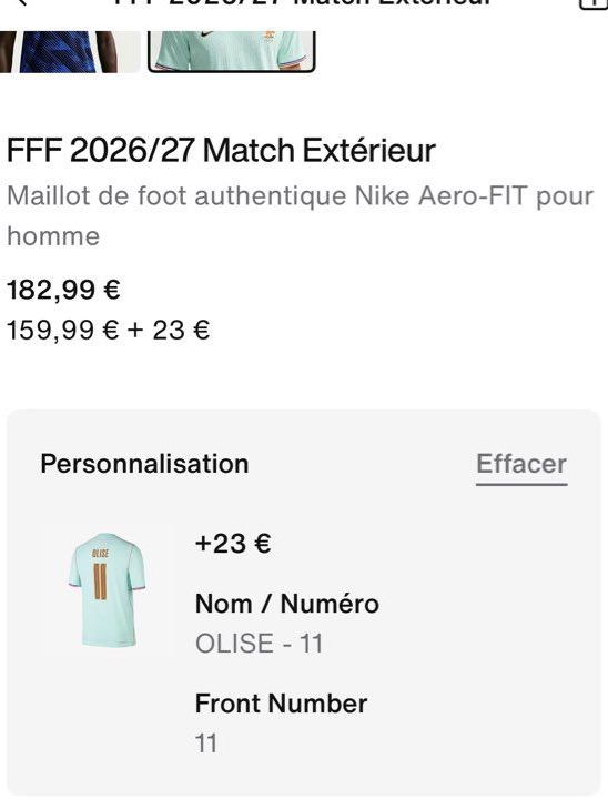 Maillot Nike Aero-Fit France FFF Away World Cup 2026 #11 Olise - 145 €