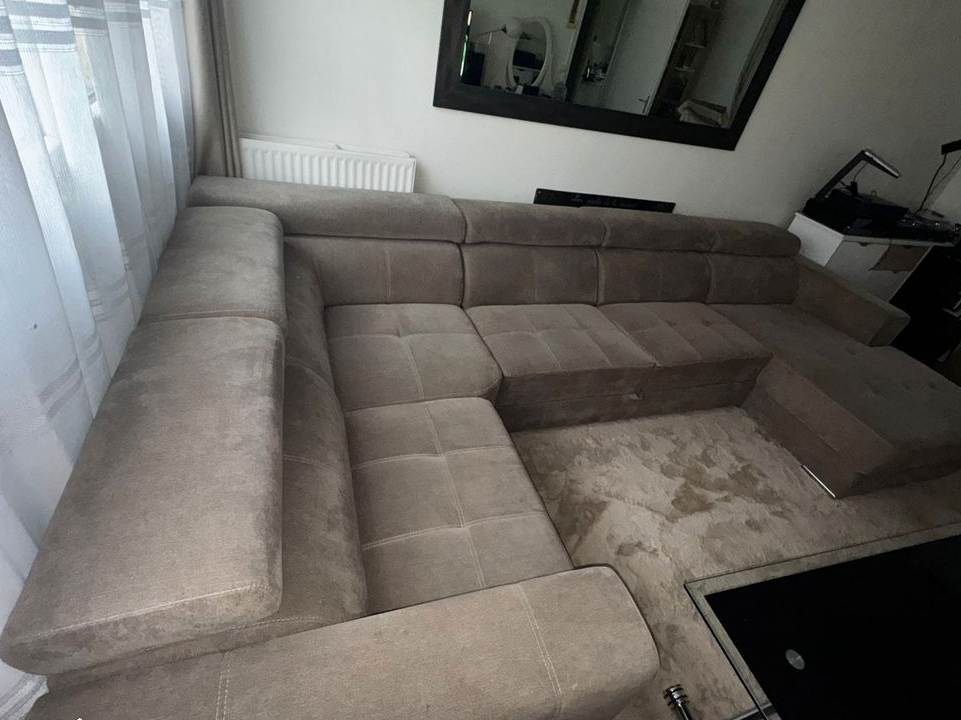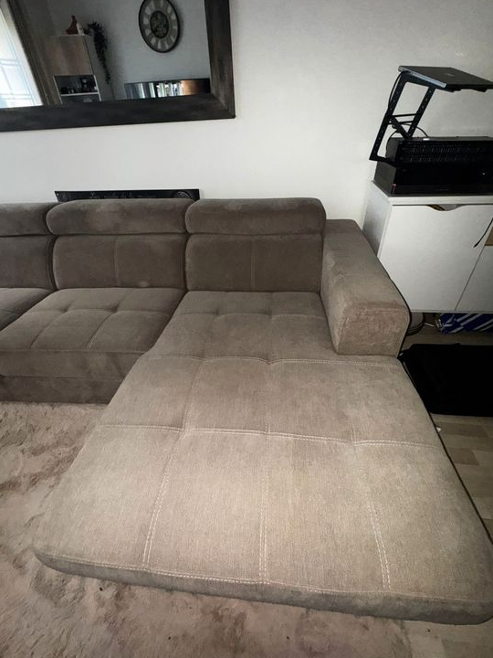 Canapé panoramique avec 1 relax électrique excellent état toujours protégé par plaid modèle quartz chez but dimensions : largeur :3,77m méridienne: 1.70m angle avec relax électrique 2.20m