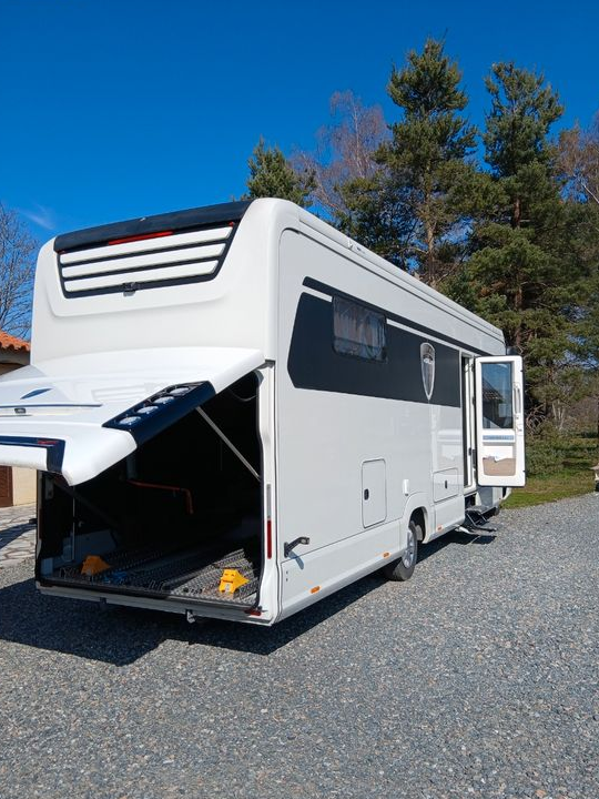 Morelo ful options comme neuf tres peu de km 4places 4couchages 2 lits electriques 4 suspensions sur coussin d air verrin ep avec telecomande tactile neuf 500amperes batteries lithium 520 watt panneaux solaire four micro onde frigo compression c.c qui passe partout no stress ect...