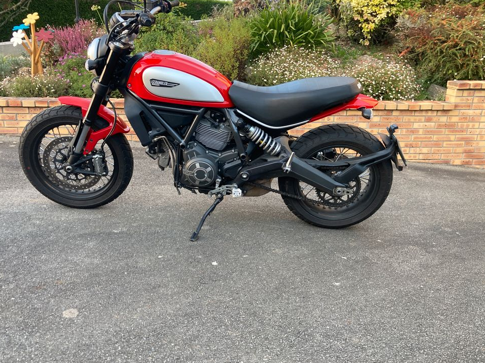 Ducati 800 scrambler ABS rouge en parfait état entretien méticuleux avec factures a l'appui totalisant 12900 kilometres