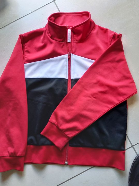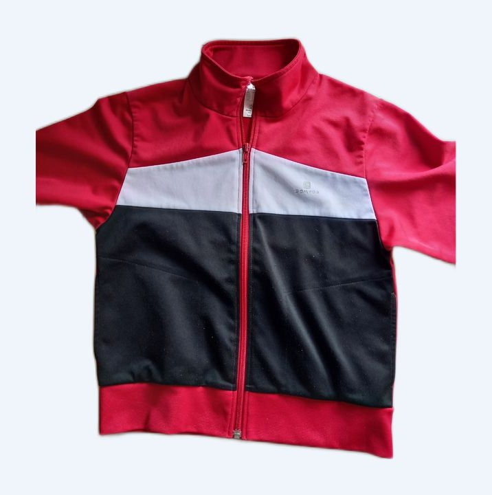 Je vends cette veste sport enfant aux couleurs dynamiques rouge, blanc et noir. Une pièce idéale pour les activités sportives et les loisirs de votre enfant.