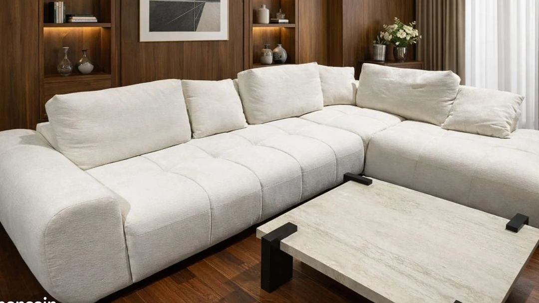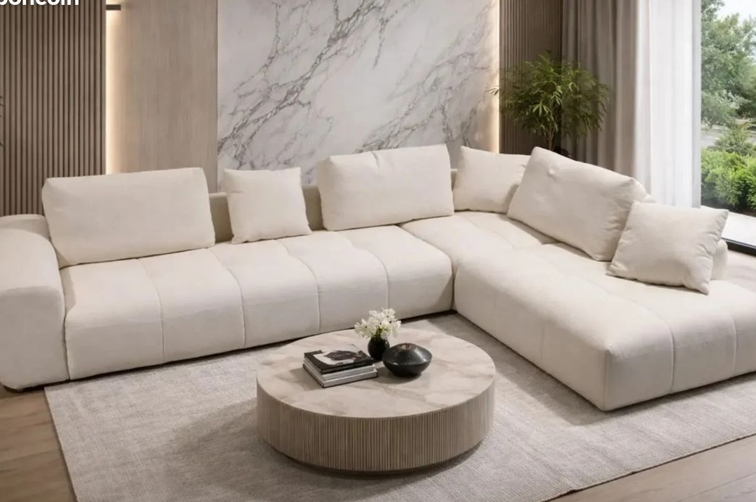 Le canapé d’angle beige en tissu Ovino marie avec finesse design contemporain et confort optimal. Ses courbes douces et son revêtement en tissu texturé apportent une touche moderne et élégante à votre salon. Conçu pour un confort maximal, il se distingue par une assise profonde et moelleuse qui invite à la détente.