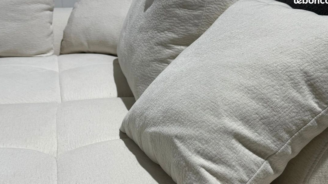 - Confort: Assise généreuse et dossier garni de coussins amovibles