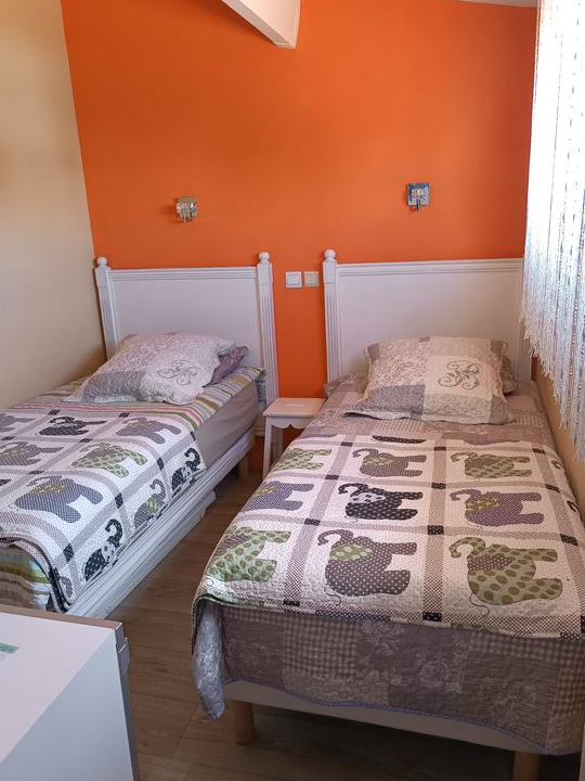 A l’étage, une chambre avec 2 lits en 90 + TV+ climatisation.