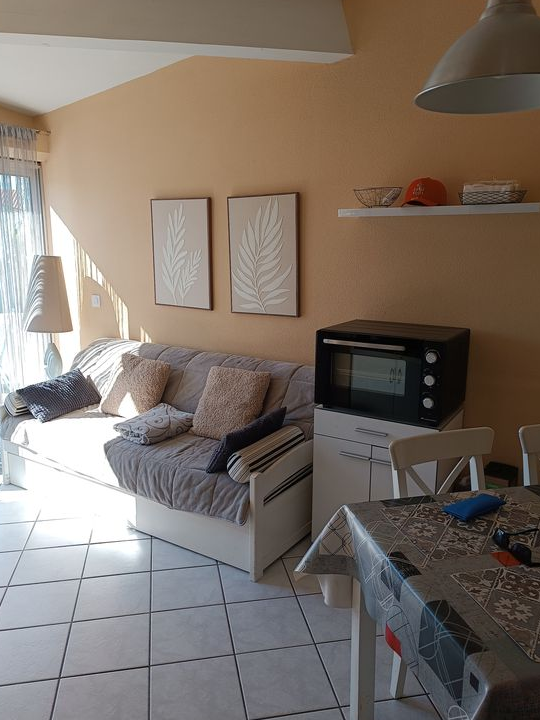 - une pièce principale avec canapé , TV, une cuisine entièrement équipée avec lave vaisselle, lave linge, micro-ondes/four, réfrigérateur/congélateur, plaque vitrocéramique 2 feux, cafetière classique et cafetière dolce gusto, grille pain, bouilloire, barbecue électrique ect ...