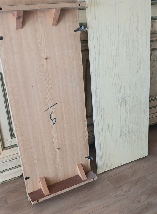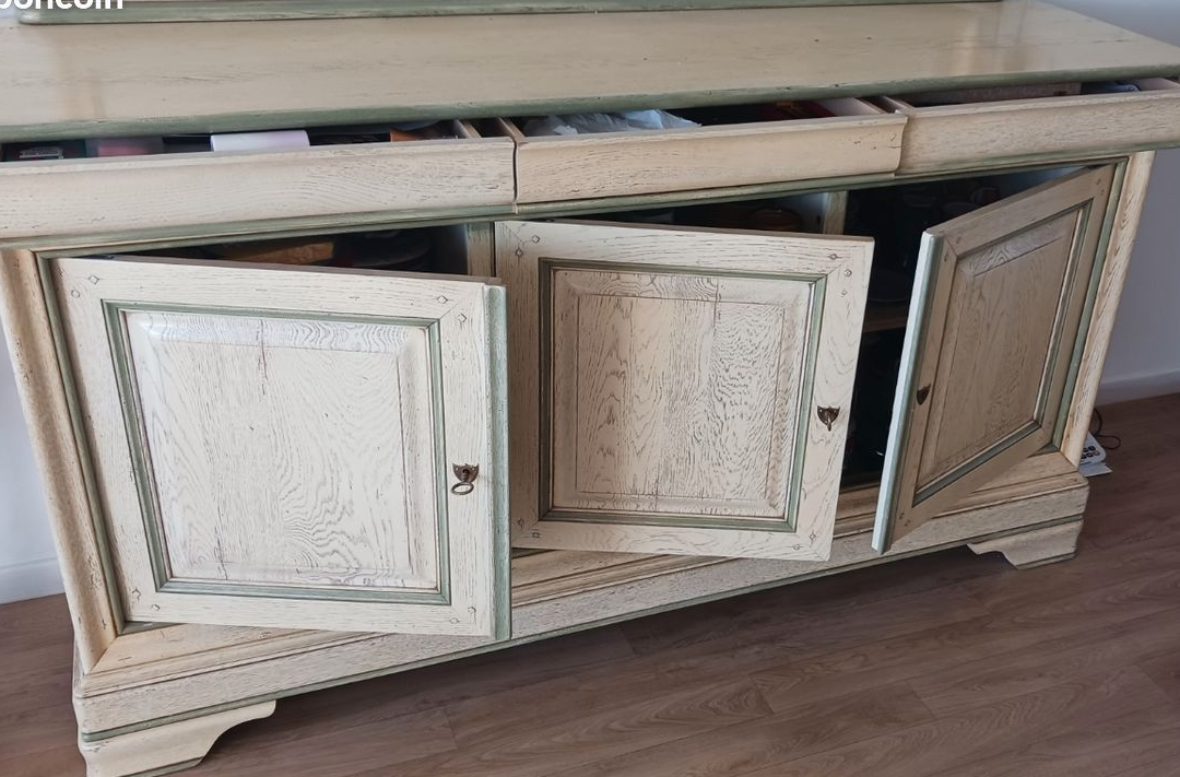 L'ensemble est en bois massif sûrement du chêne de couleur anis