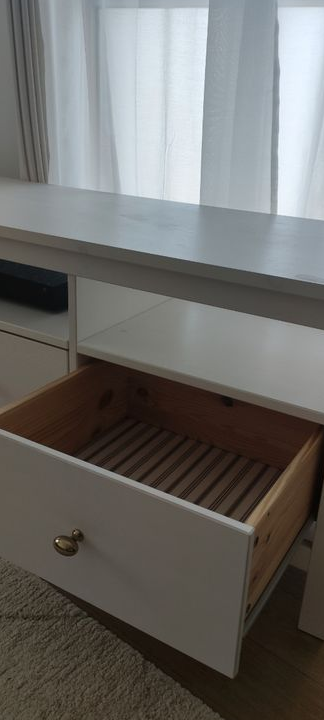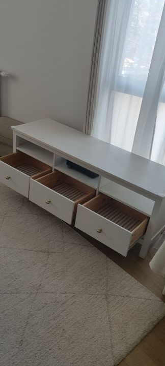 Meuble tv blanc Hemnes en bois de chez Ikea, quelques traces d'usure (voir photos)