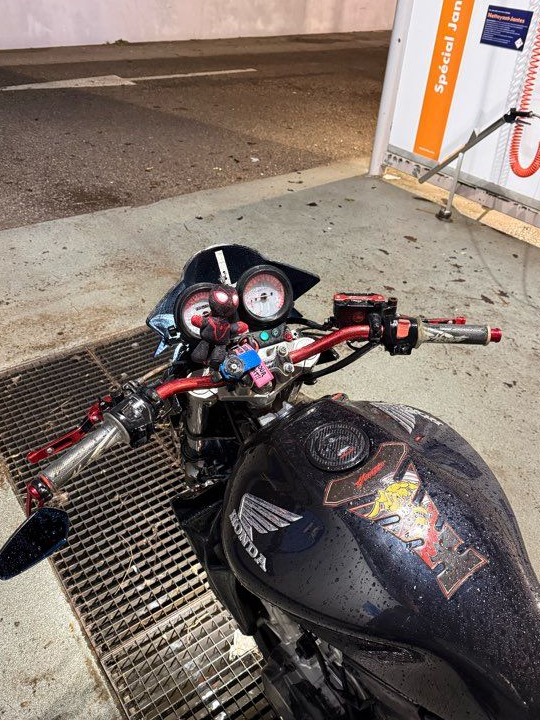- Échappement demi-ligne Dominator GP + ligne vidée → gros son, ça chante fort 😮‍🔥