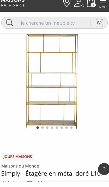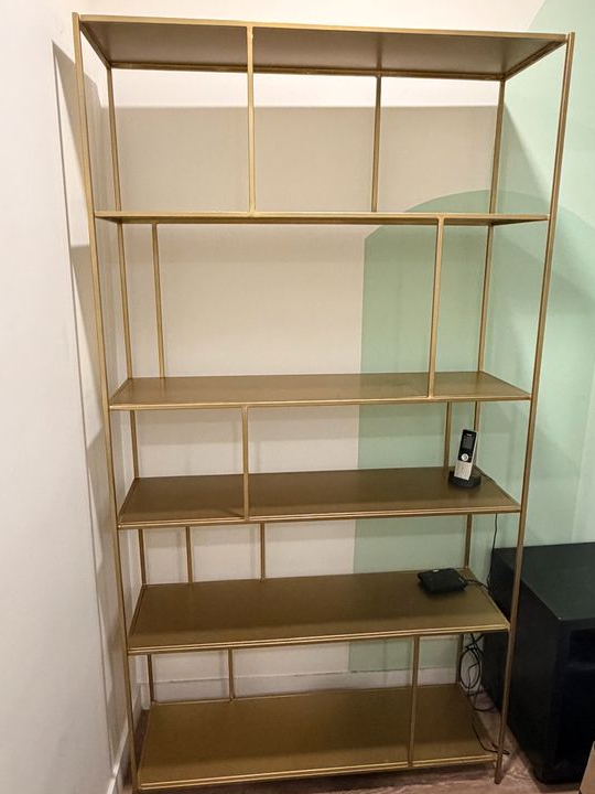 Je vends cette étagère Maisons du Monde modèle Simply en métal doré. Avec ses 5 niveaux de rangement, elle apportera une touche élégante et moderne à votre salon !