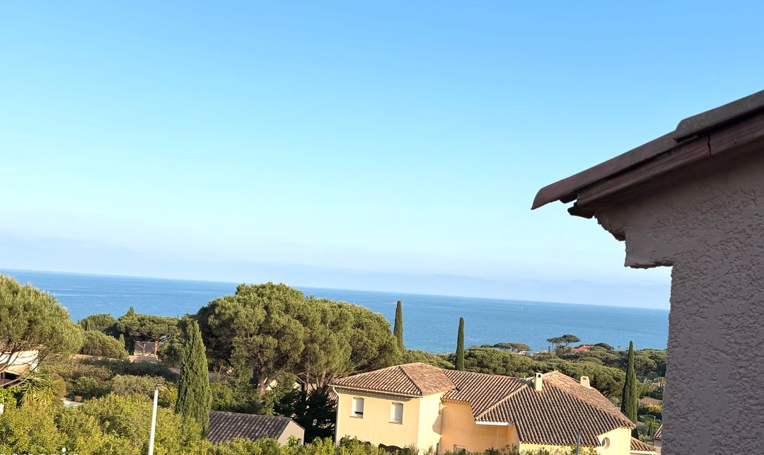 La pièce principale s’ouvre sur une agréable terrasse, véritable prolongement de l’espace de vie, idéale pour savourer des instants de détente, des repas en extérieur ou simplement admirer la vue sur la Méditerranée et la végétation environnante.