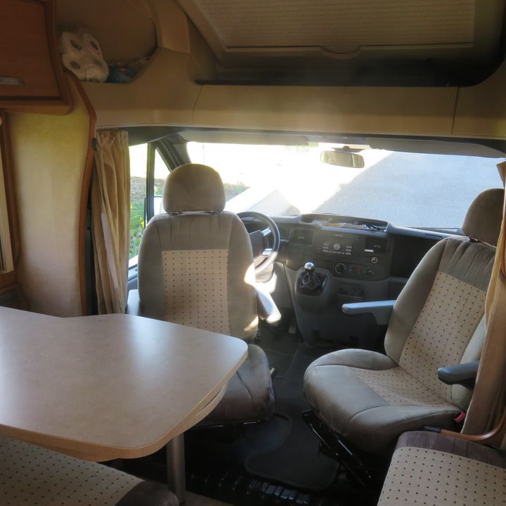 Vend camping-car Challenger GENESIS 52 5 Places CG/6 Couchages. 1 Lit pavillon 2 pers,2lits superposés à l'arrière et 2 couchages aménageable sous lit pavillon. Porte vélo 4 vélo ,store extérieur ,parabole motorisé ,3 lanterneaux de toit changé récemment . Porteur Ford Transit n'affichant que 54680 km, pas voir peu évolutif .Idéal couple avec enfants.